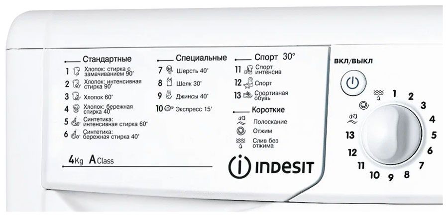 | Программы стирки | бережная/хлопок 40°C, джинсы, отжим, полоскание, синтетика 40°С, синтетика 60°C, слив, спорт, спортивная обувь, спорт интенсив, хлопок 60°C, хлопок 90°C, хлопок интенсивная 90°C, шелк, шерсть, экспресс стирка 15quot;. |